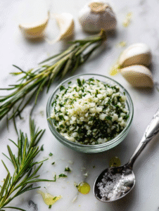 - Mix minced garlic, chopped rosemary, salt, and black pepper to create a fragrant herb rub.