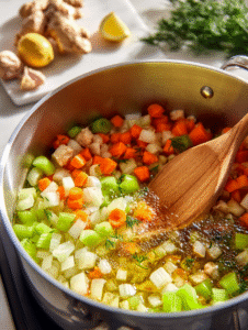 Step 2: In a large pot, sauté chopped onion, celery, and carrots in a splash of olive oil until fragrant, about 5 minutes.