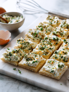 - Spread a generous layer of the herbed cheese mixture onto each puff pastry square, leaving a small border around the edges.