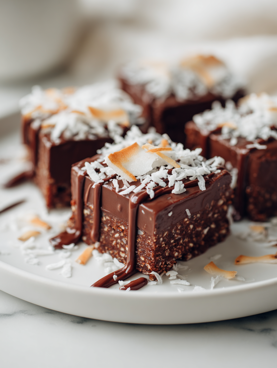 These bars are a little pocket of childhood nostalgia, reworked for grown-up palates—richer chocolate, a touch of salt, smoky coconut. They’re honest, quick, and no fuss, perfect for those moments when a sweet craving hits unexpectedly. Plus, they hold up well in the fridge or freezer, making them a good standby for a spontaneous treat.