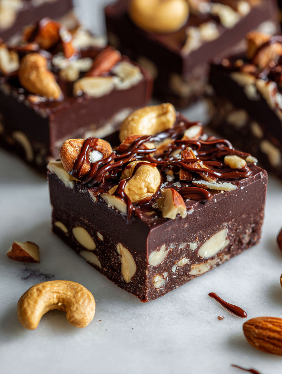 - Resting & Finishing: Serve immediately or store in an airtight container in the fridge. For a neater finish, dust with cocoa powder or drizzle with extra melted chocolate before slicing.