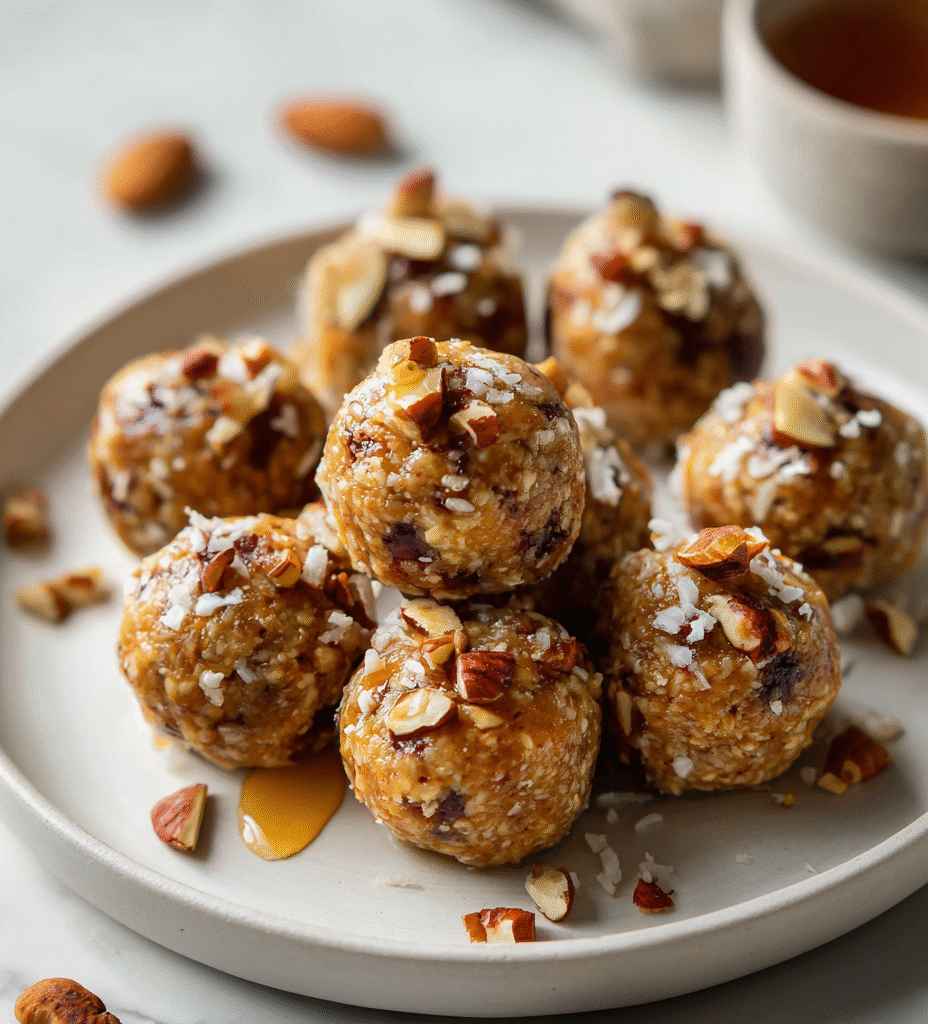 • This recipe came together one afternoon when I was cleaning out my pantry and found a bag of dates that needed using up. I wanted something quick, no fuss, that still felt a little indulgent without derailing my day. The idea of combining them with nuts and a touch of coconut was a happy accident — it’s like a bite of chewy, crunchy simplicity.