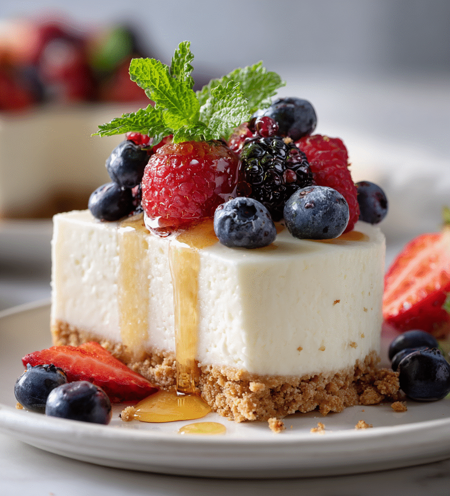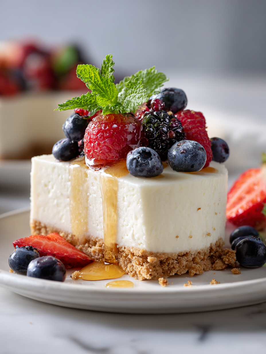 - Serve: Release the sides of the springform pan carefully. Slice with a sharp knife, wiping between cuts for clean edges. Garnish with fresh fruit or a drizzle of honey if desired.