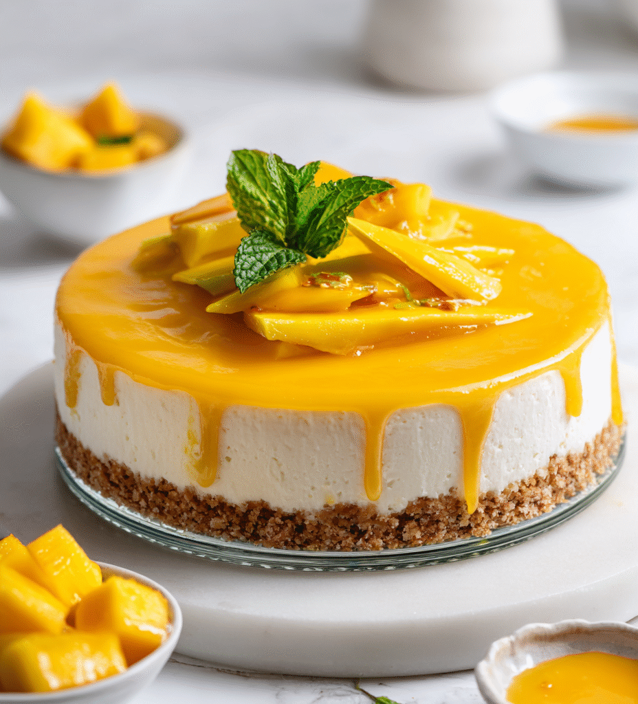 - Finishing touches: Before serving, optionally top with fresh mango slices, toasted coconut, or a sprig of mint. Carefully remove the sides of the springform pan for clean presentation.