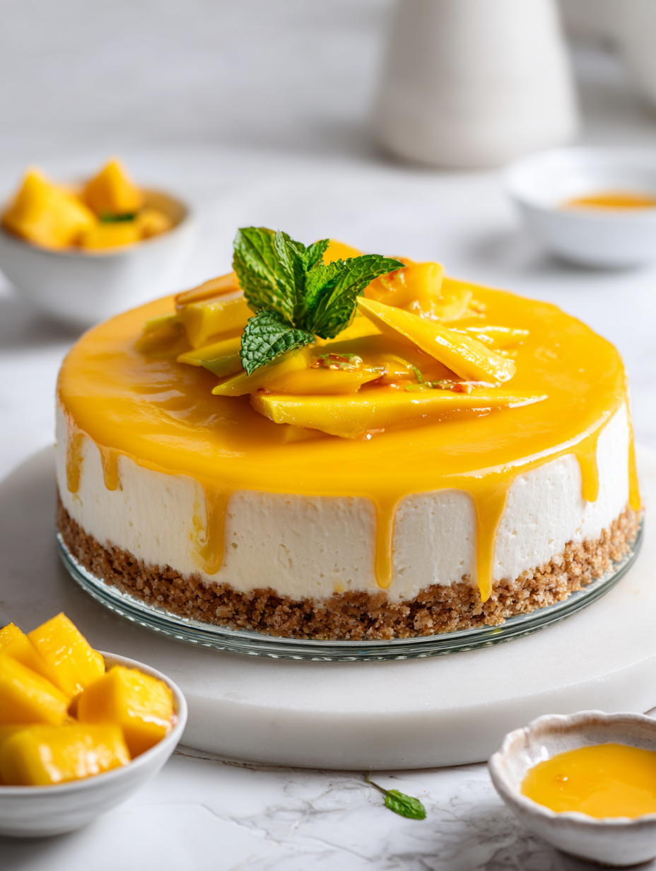 - Serve chilled: Slice with a warm knife (dip in hot water and wipe dry for clean cuts). The cheesecake should be firm, glossy, and mango-bright with a creamy texture that melts.