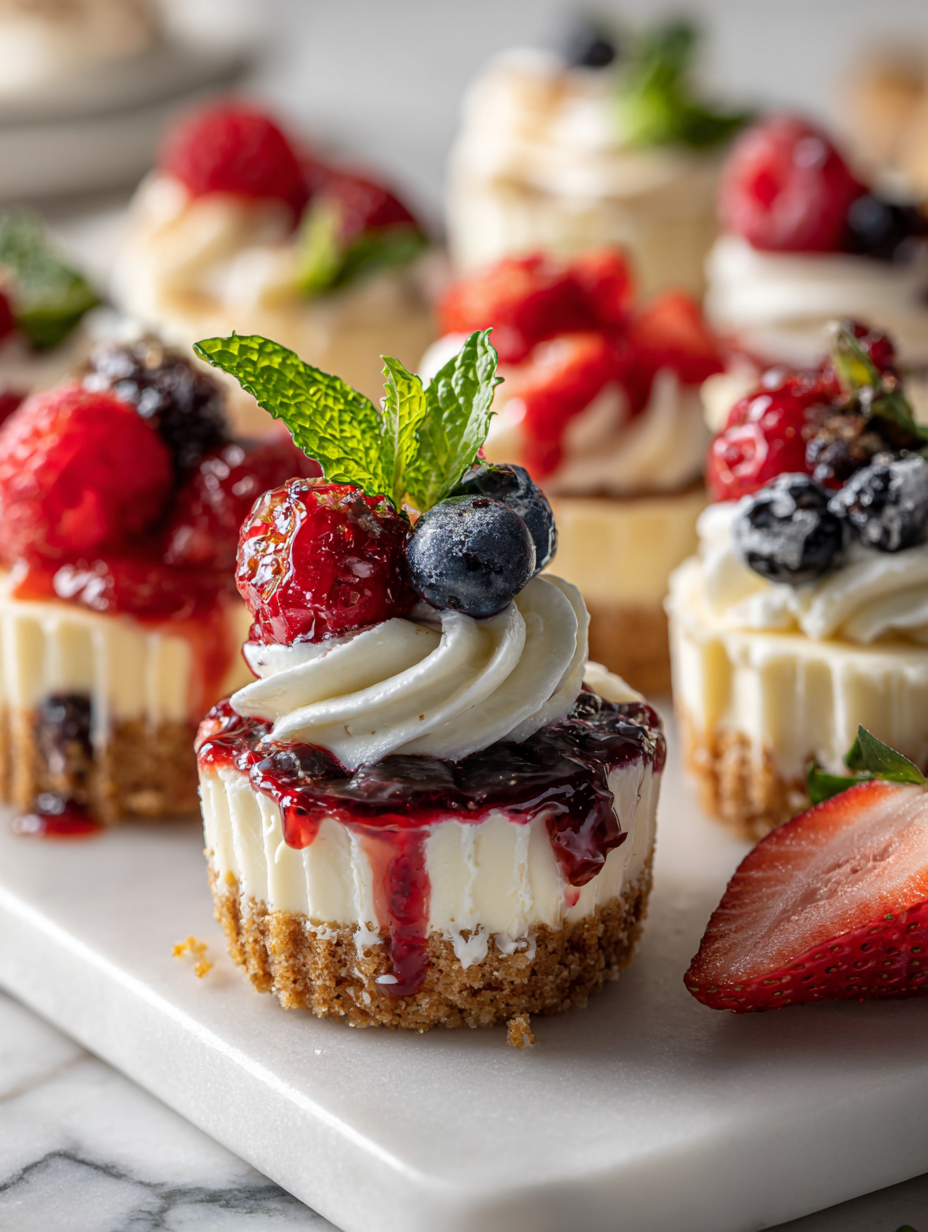 - Once chilled and set, remove the cheesecakes from the liners and garnish with fresh berries or your favorite toppings for a colorful, inviting presentation.