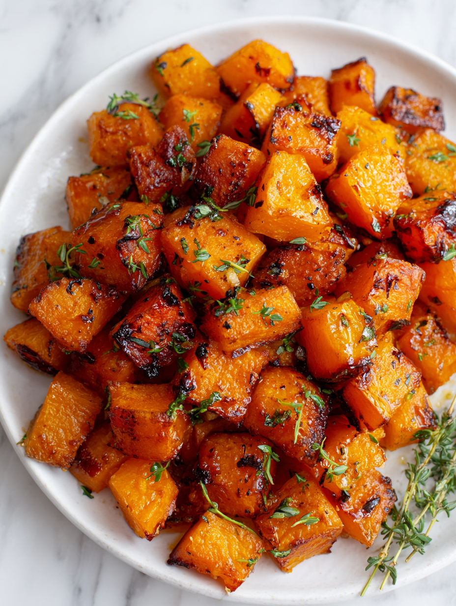 10. Transfer the roasted, caramelized squash to a serving dish, then sprinkle with freshly chopped parsley or thyme for a bright, fresh finish.