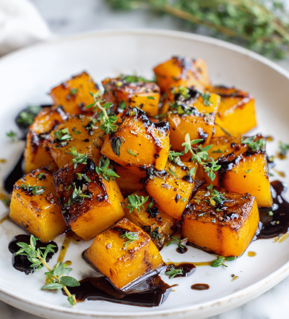 Roasted Butternut Squash with Balsamic Glaze and Herbs